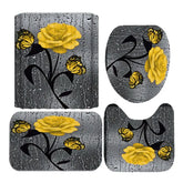 A 4-piece bathroom décor set including a shower curtain, non-slip rugs, a toilet seat cover, and a bath carpet. Durable and waterproof, it enhances comfort and style in your bathroom or entrance area.