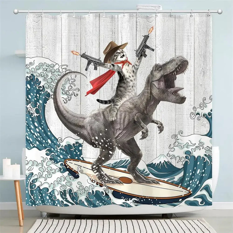 Cat & Dinosaur Shower Curtain