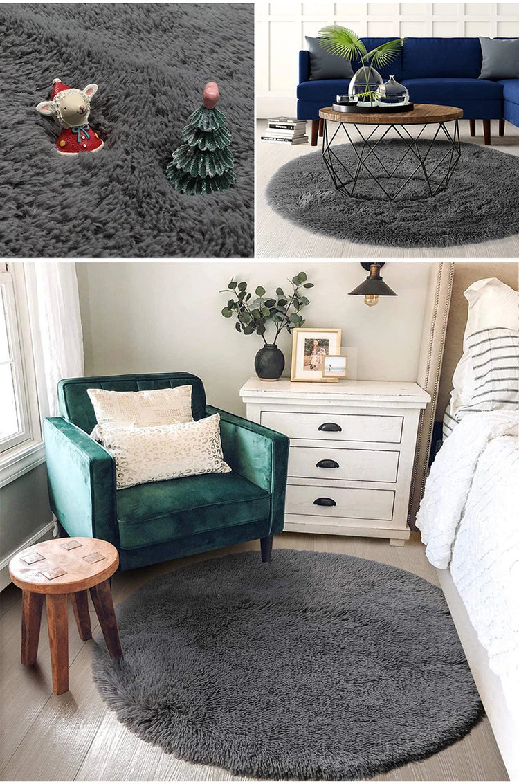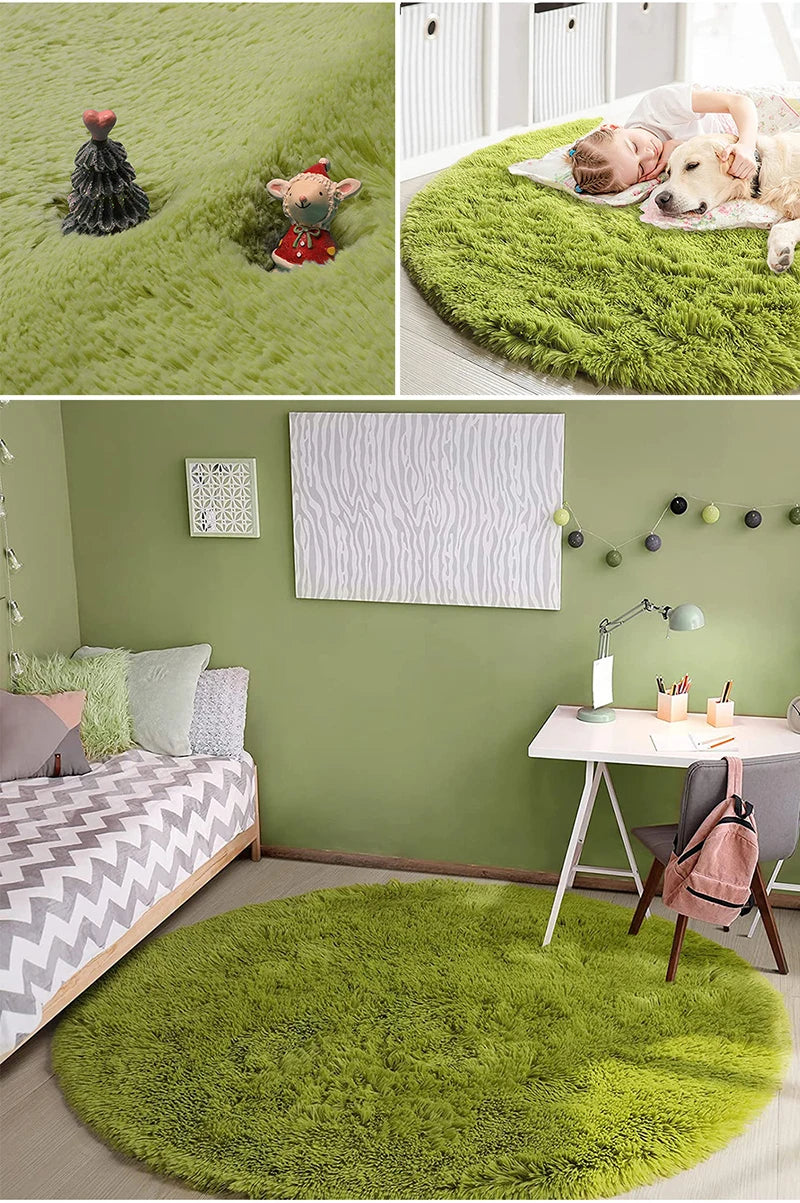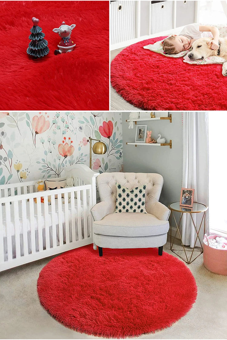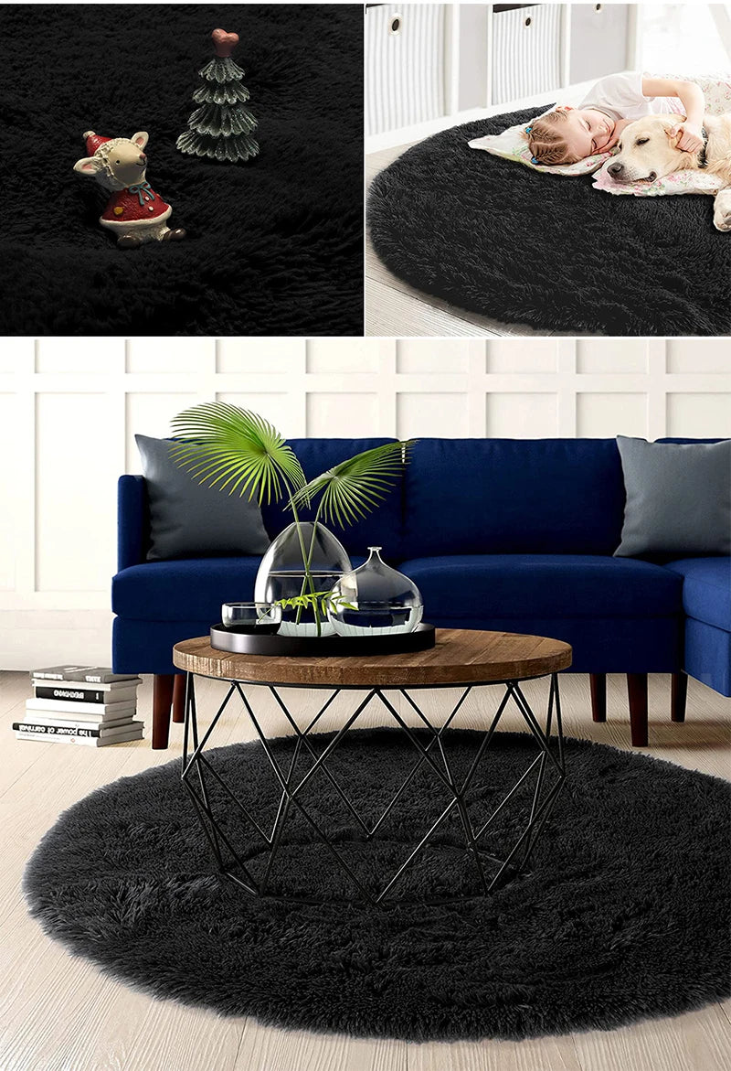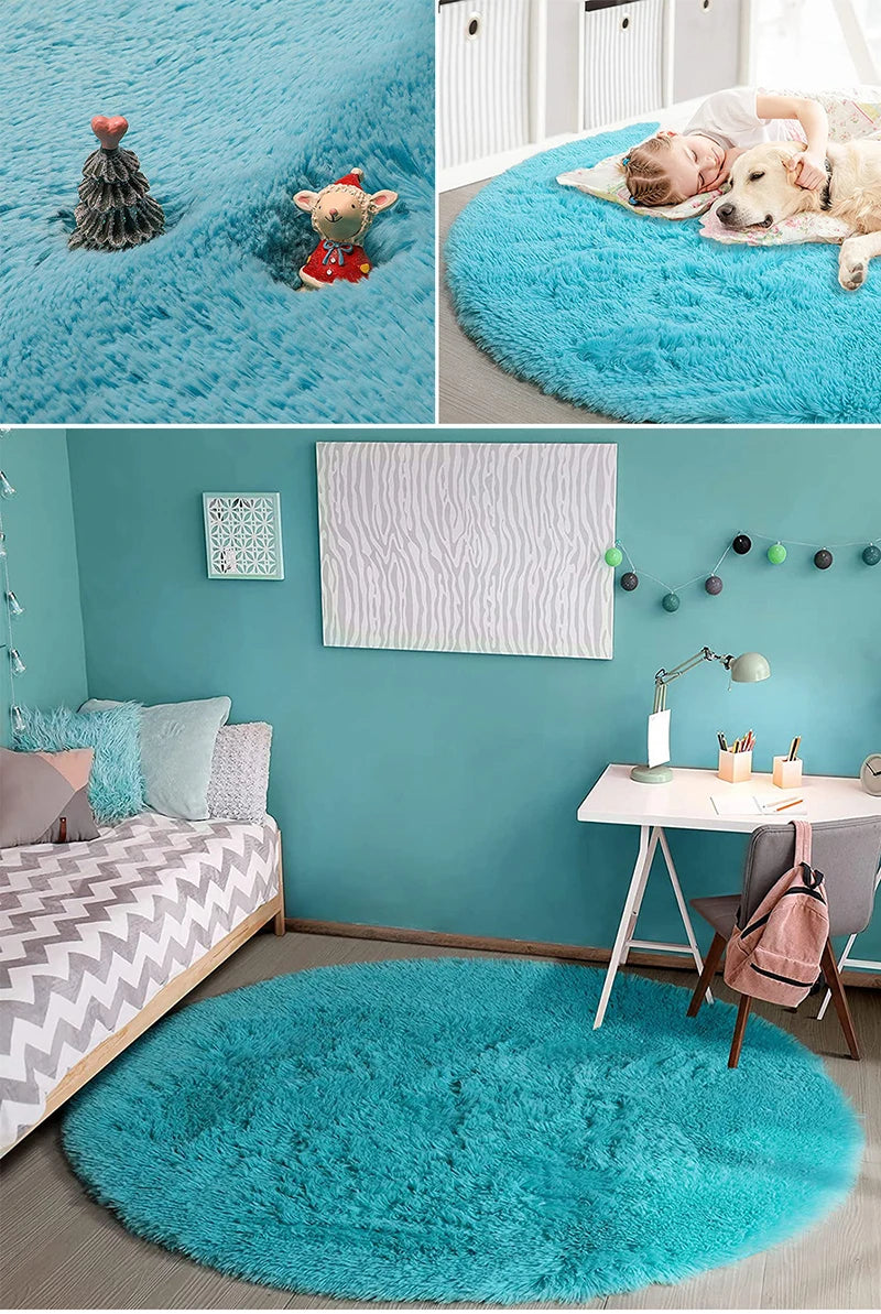 A soft, fluffy round carpet designed for bedrooms or living rooms, adding warmth and comfort to any space. Its cozy texture and stylish look make it perfect for girls’ rooms, home décor, or as a gentle play mat for babies.