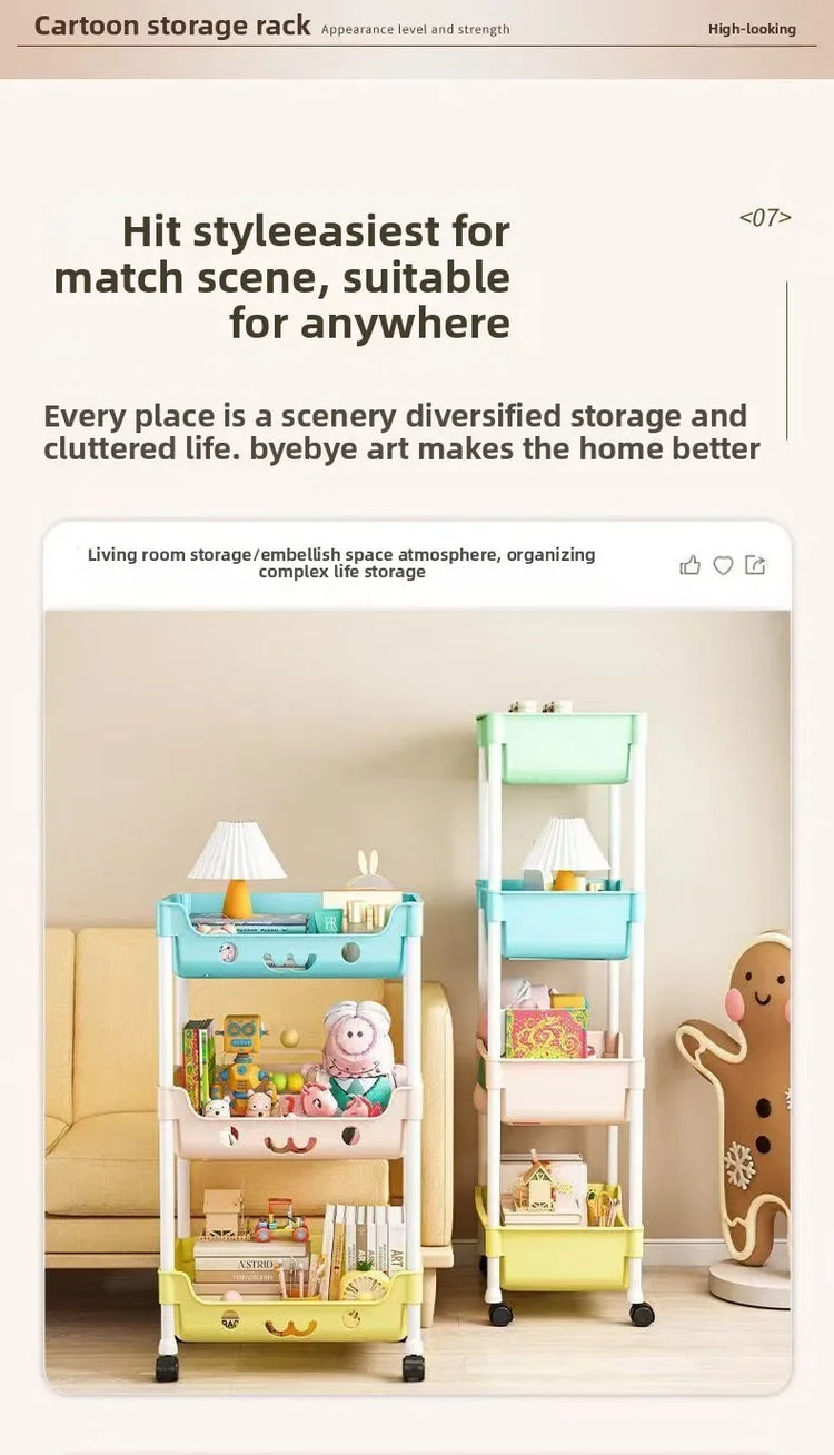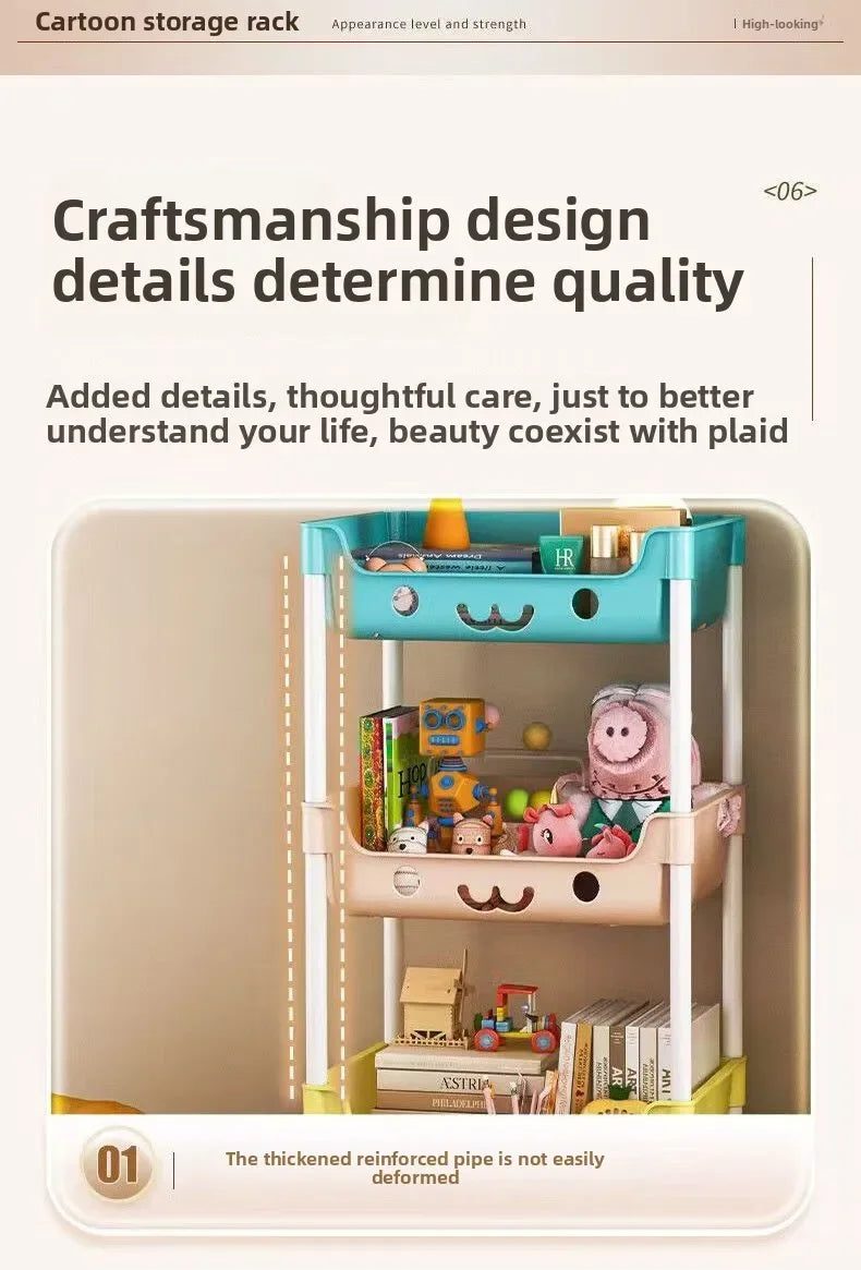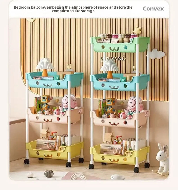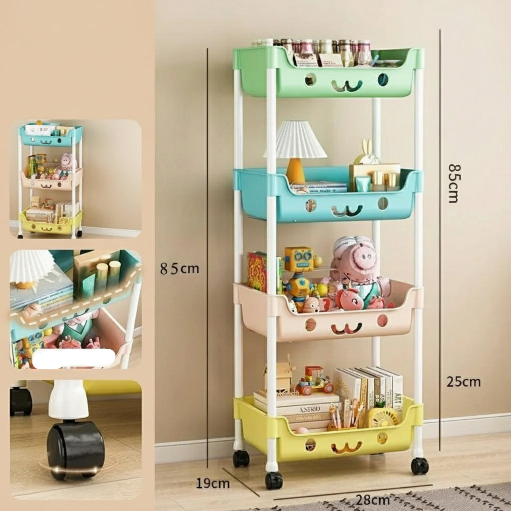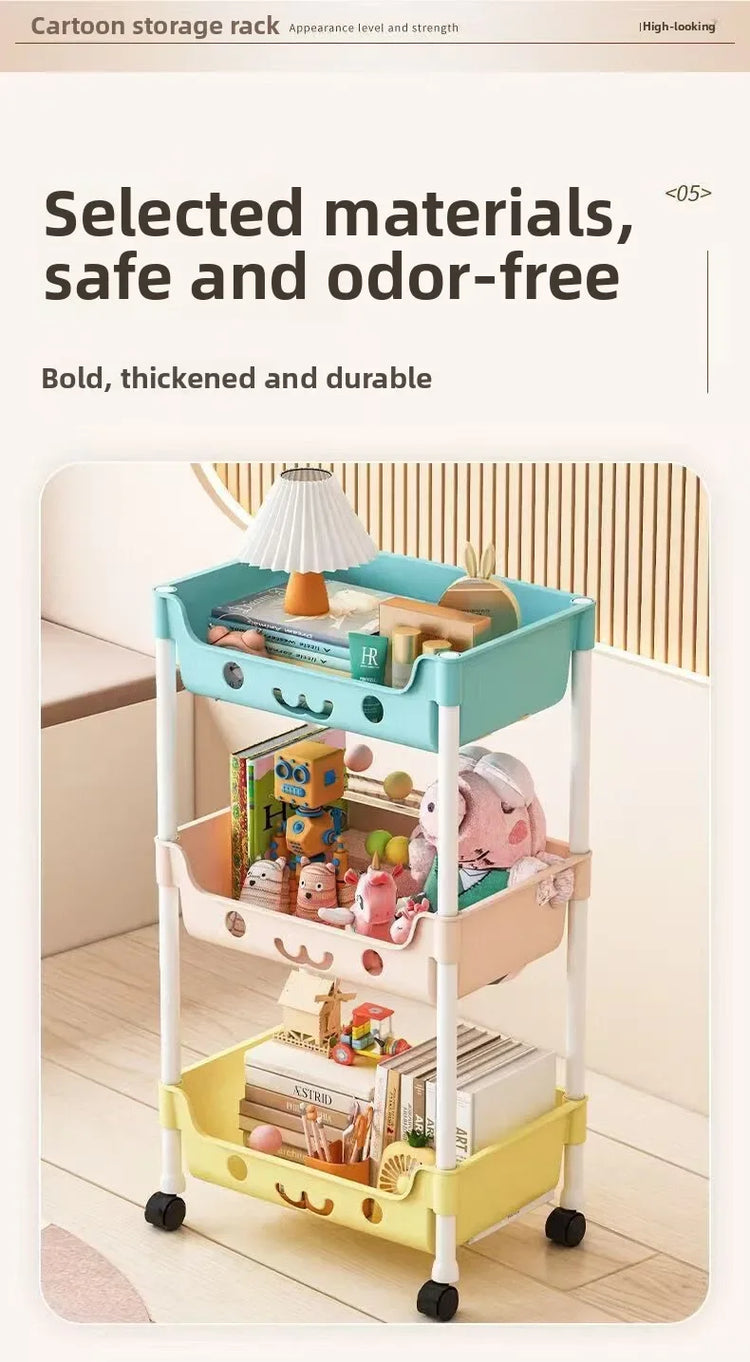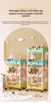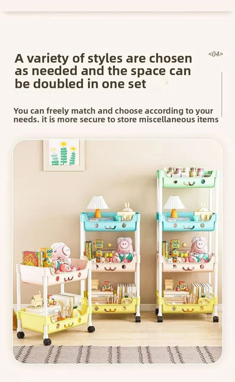 A durable multi-tier storage rack with a cute macaron-inspired design. Ideal for bedrooms or living rooms, it offers ample space for organizing children’s items, toys, or household essentials.