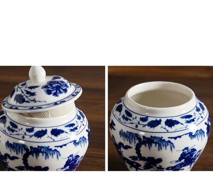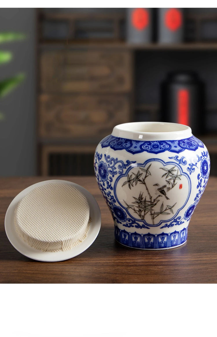 Store your tea in style with this blue and white porcelain ceramic canister. Featuring a classic Chinese design with a sealed lid, it keeps tea leaves fresh while adding an elegant decorative touch to your kitchen or tea set.