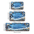 A long kitchen and bathroom floor mat featuring blue wood stripes, rope, and starfish patterns. It’s machine washable and adds a fresh coastal touch to your home décor.