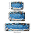 A long kitchen and bathroom floor mat featuring blue wood stripes, rope, and starfish patterns. It’s machine washable and adds a fresh coastal touch to your home décor.