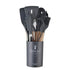 A 12-piece kitchen utensil collection featuring non-stick silicone heads and sturdy wooden handles. Heat-resistant and durable, it comes with a convenient storage bucket for easy organization.