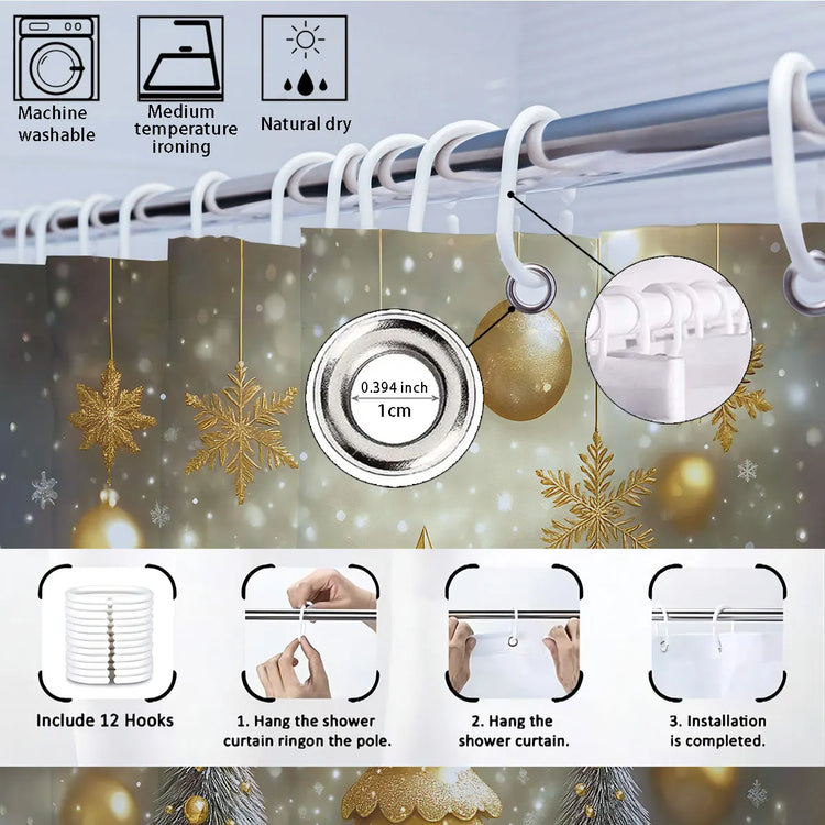 Add festive elegance to your bathroom with this golden Christmas tree shower curtain. Made from waterproof fabric for reliable privacy and easy cleaning, it includes 12 hooks for quick and simple installation—perfect for holiday home décor.