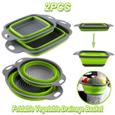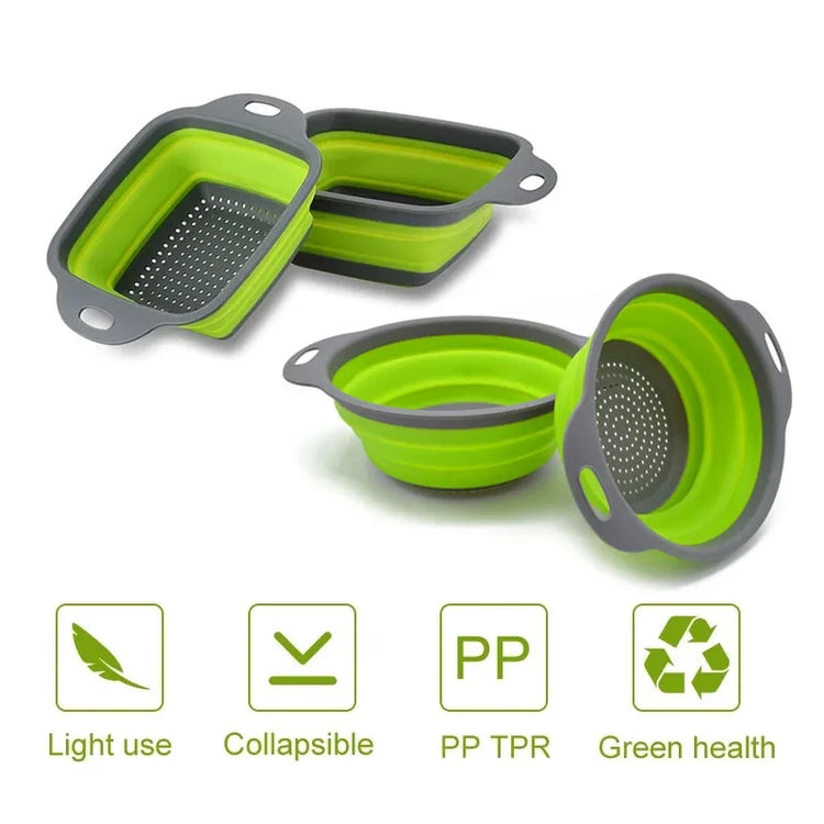 A set of two silicone drainer baskets designed for washing fruits, vegetables, and pasta. Foldable and space-saving, they’re durable, easy to clean, and perfect for everyday kitchen use.