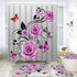Transform your bathroom with this 3D butterfly and flower shower curtain set. Featuring vibrant rose designs in blue and pink, it includes a non-slip rug, toilet lid cover, and bath mat, offering both beauty and functionality in one elegant set.