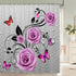 Transform your bathroom with this 3D butterfly and flower shower curtain set. Featuring vibrant rose designs in blue and pink, it includes a non-slip rug, toilet lid cover, and bath mat, offering both beauty and functionality in one elegant set.