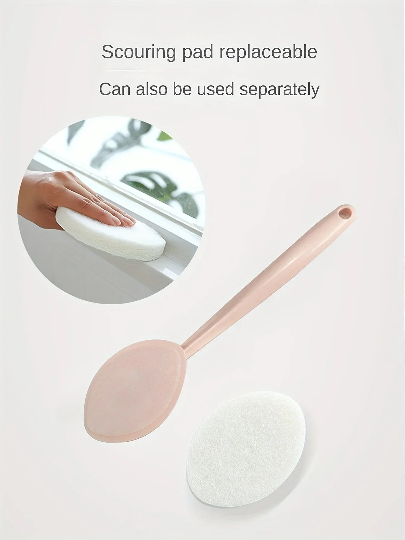 A long-handled cleaning brush with a soft sponge head, designed for scrubbing walls, bathtubs, toilets, and sinks. It makes bathroom cleaning easy and effective, reaching every corner with ease.