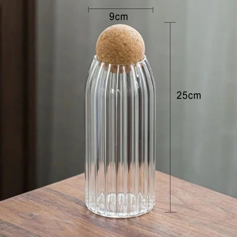 Crafted from high borosilicate glass, this transparent storage jar is perfect for organizing and displaying tea, coffee beans, candy, spices, or dry foods. The airtight cork lid ensures freshness and aroma retention, while its sleek minimalist design adds a stylish touch to any kitchen or pantry décor.