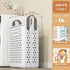 A folding laundry basket with wheels and a convenient handle for easy movement. Its hollowed-out, breathable design provides ample storage space while keeping clothes fresh and organized.