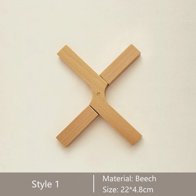 A minimalist X-shaped pot mat made from high-quality beech and walnut wood. Detachable and easy to clean, it provides heat insulation and adds a natural, stylish touch to your kitchen.