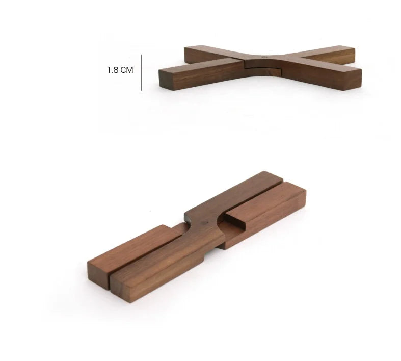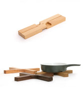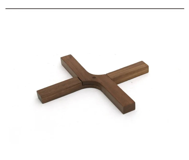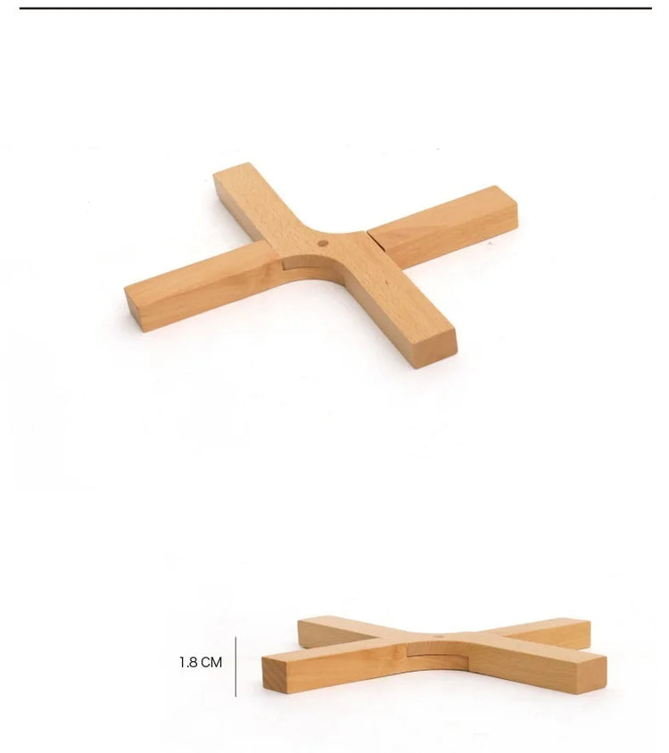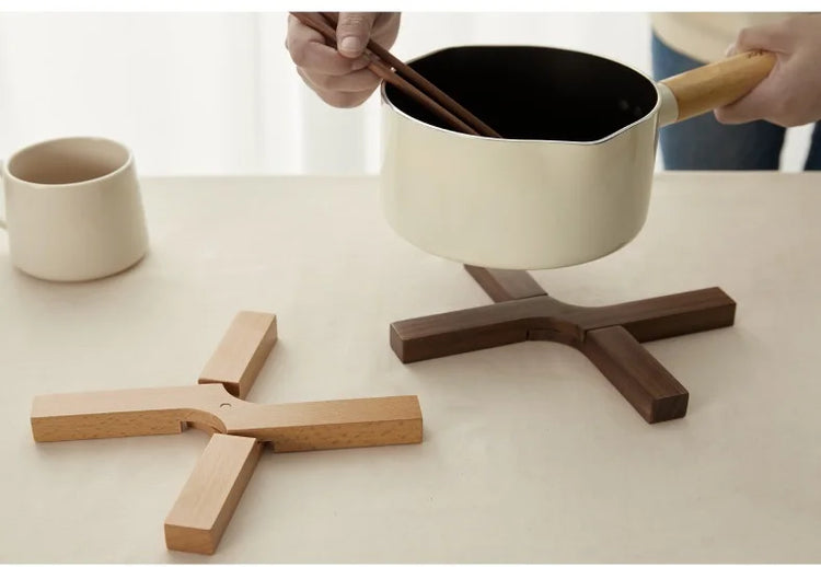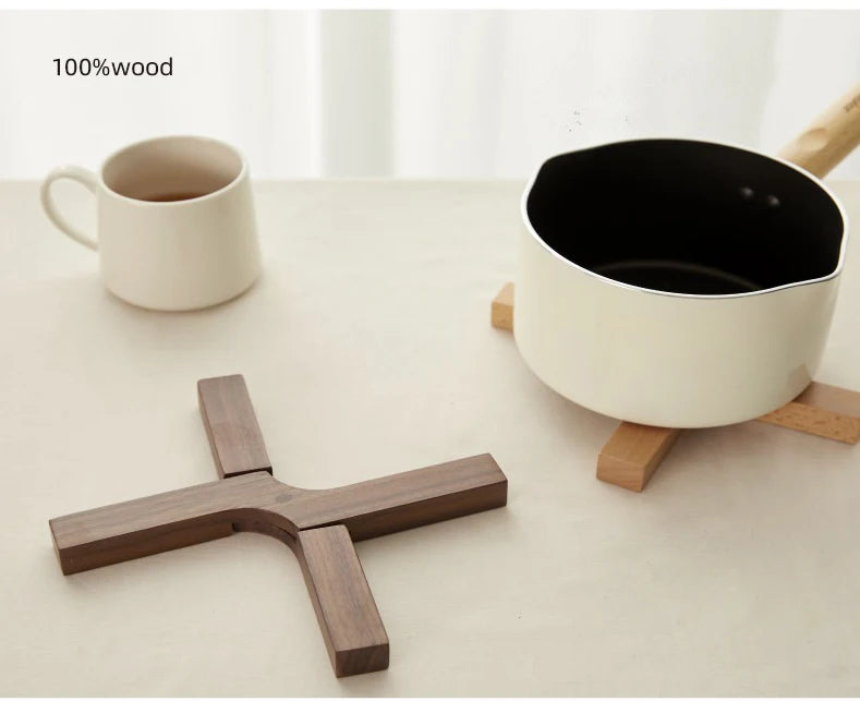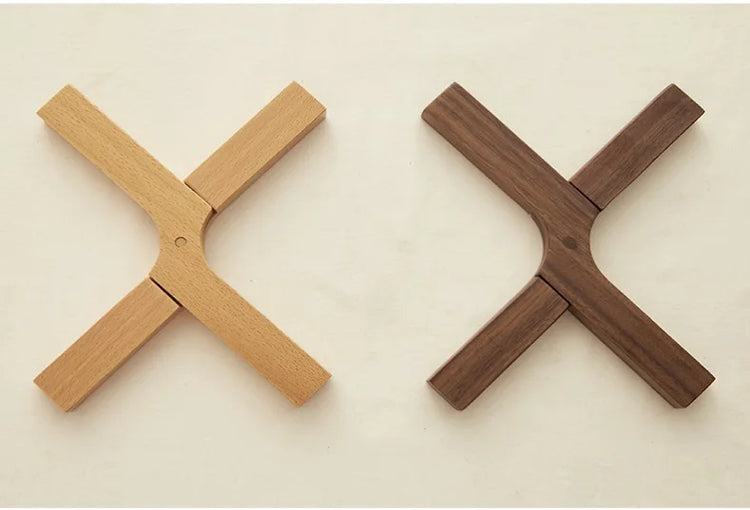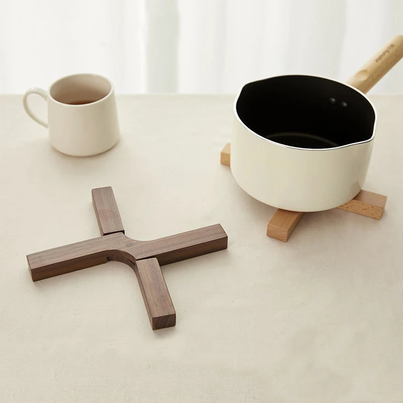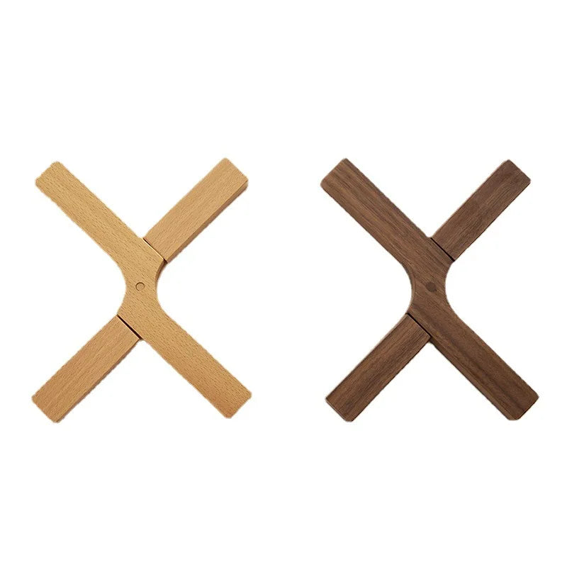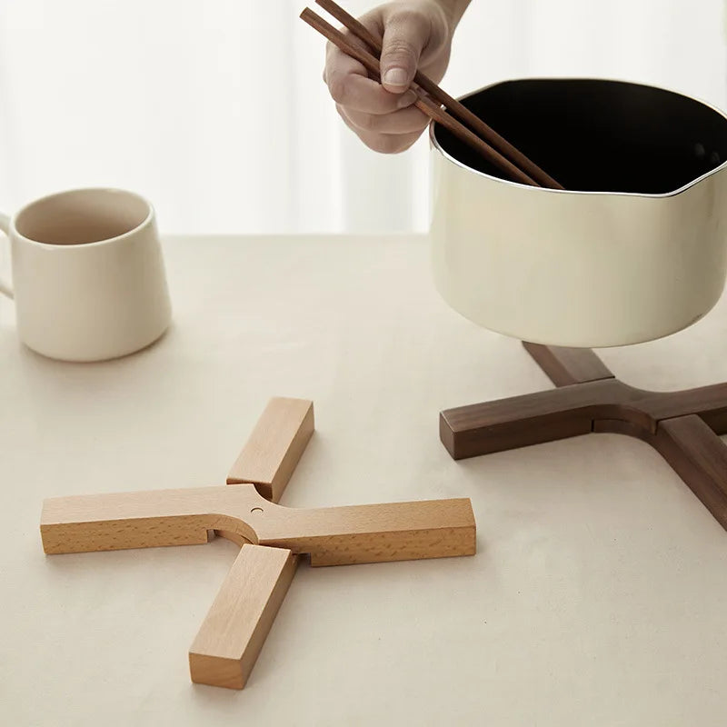 A minimalist X-shaped pot mat made from high-quality beech and walnut wood. Detachable and easy to clean, it provides heat insulation and adds a natural, stylish touch to your kitchen.