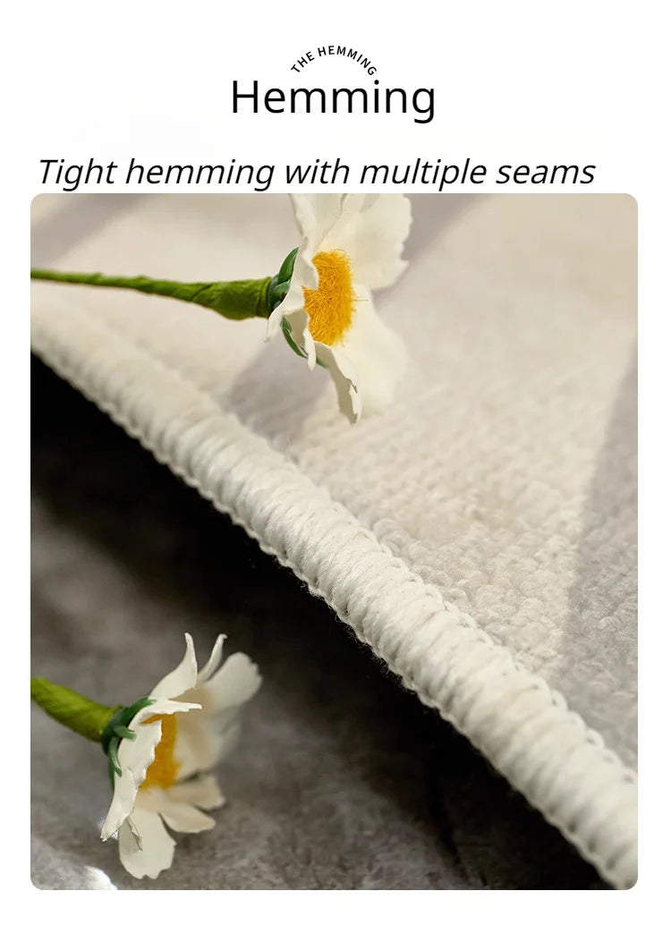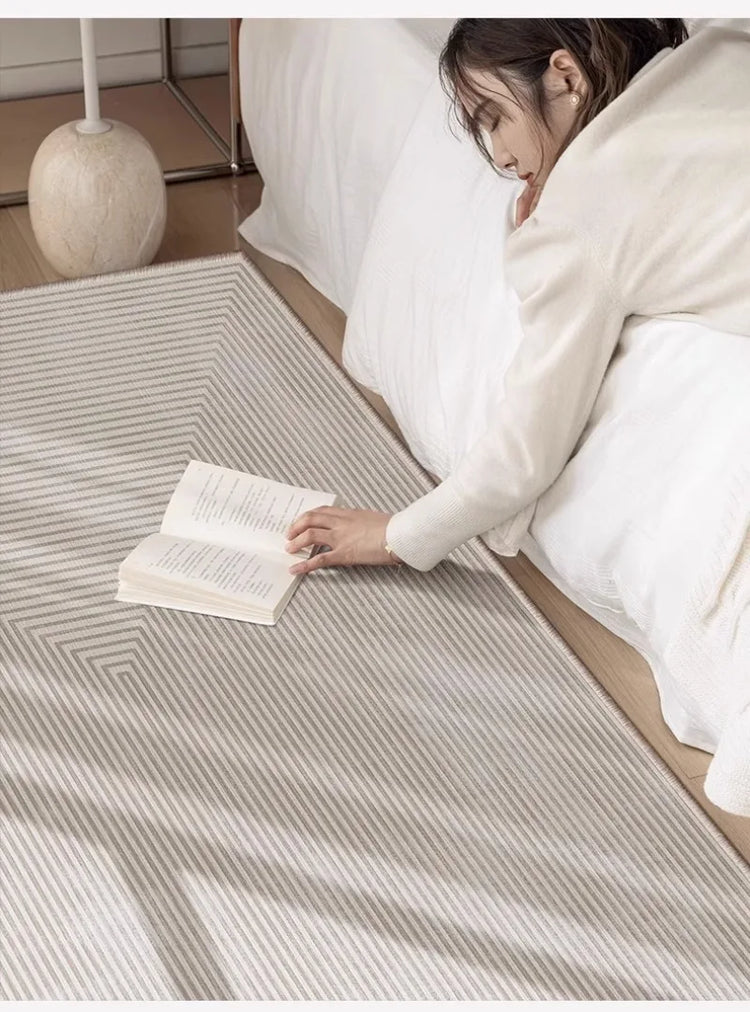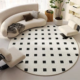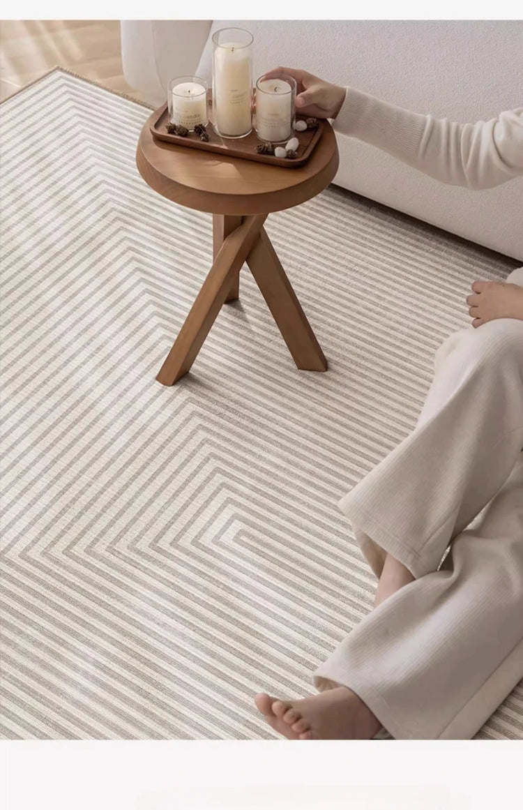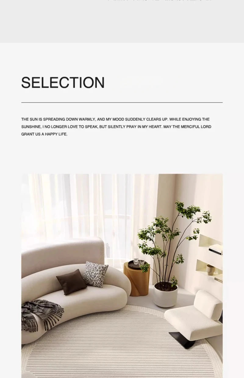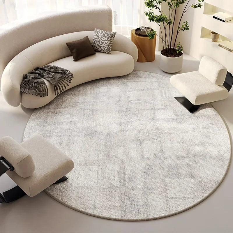 A stylish round rug in a light beige tone, designed to add a touch of luxury to any room. Its non-slip backing and simple design make it perfect for living rooms, bedrooms, or large open spaces.