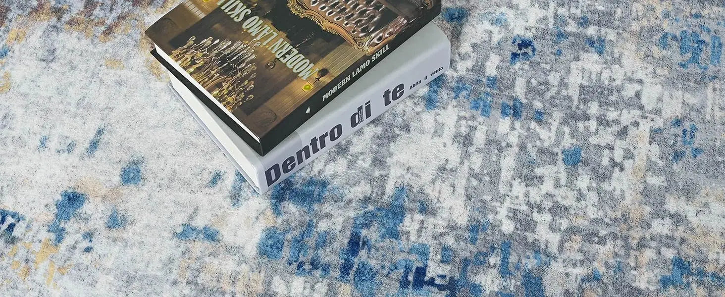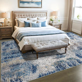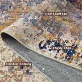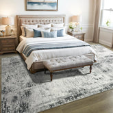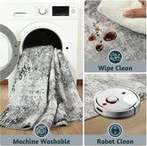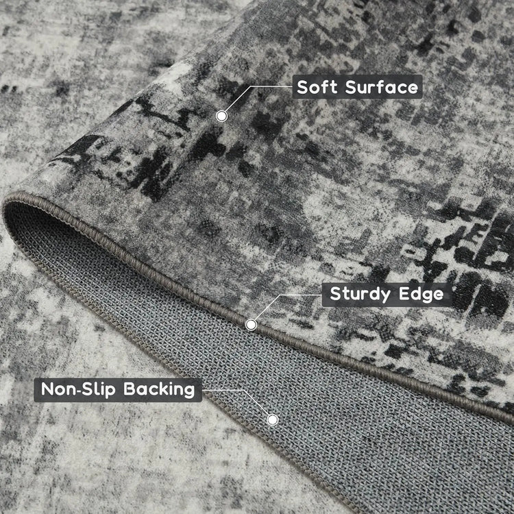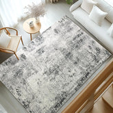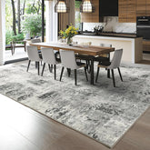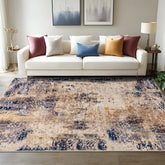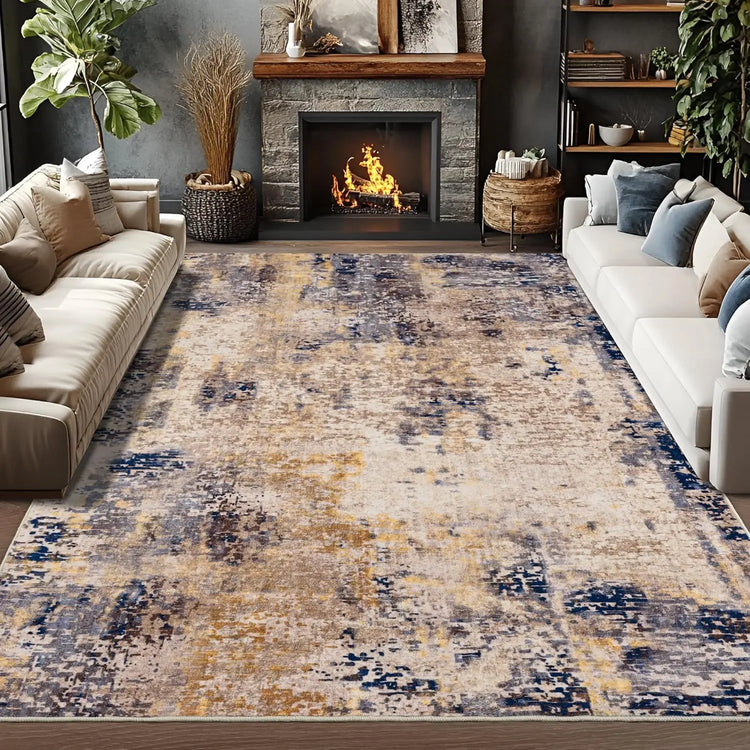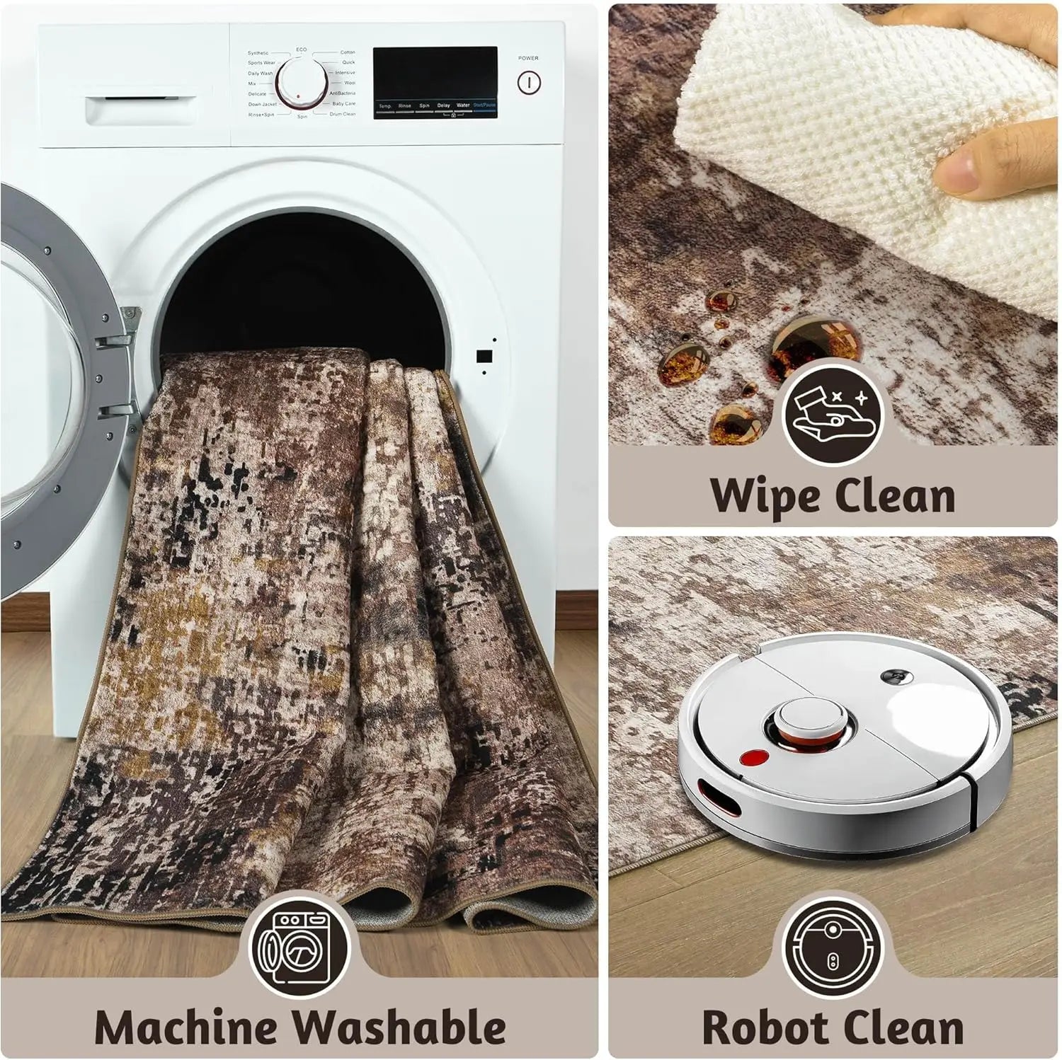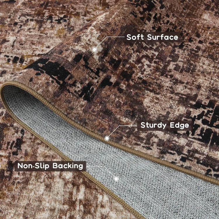 A large modern rug featuring a soft, boho-inspired abstract design with a vintage touch. Its low-pile, non-slip, and machine-washable surface makes it both stylish and easy to maintain for any living space.