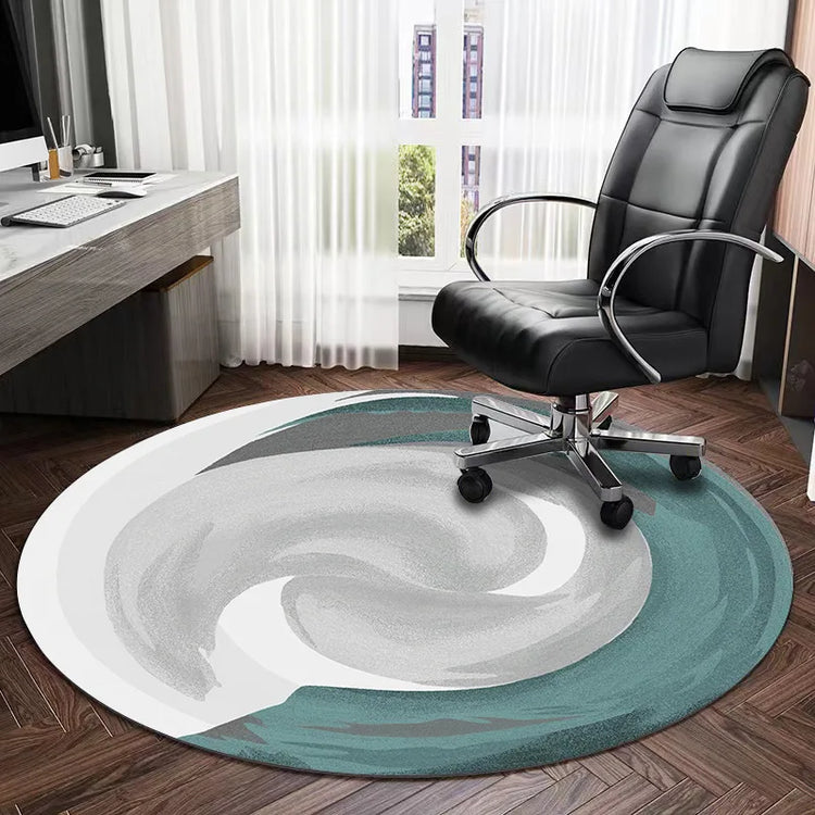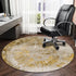 A modern round carpet with a geometric marble design accented in metallic gold and silver tones. Its non-slip surface and artistic style make it ideal for living rooms, offices, or elegant home décor.