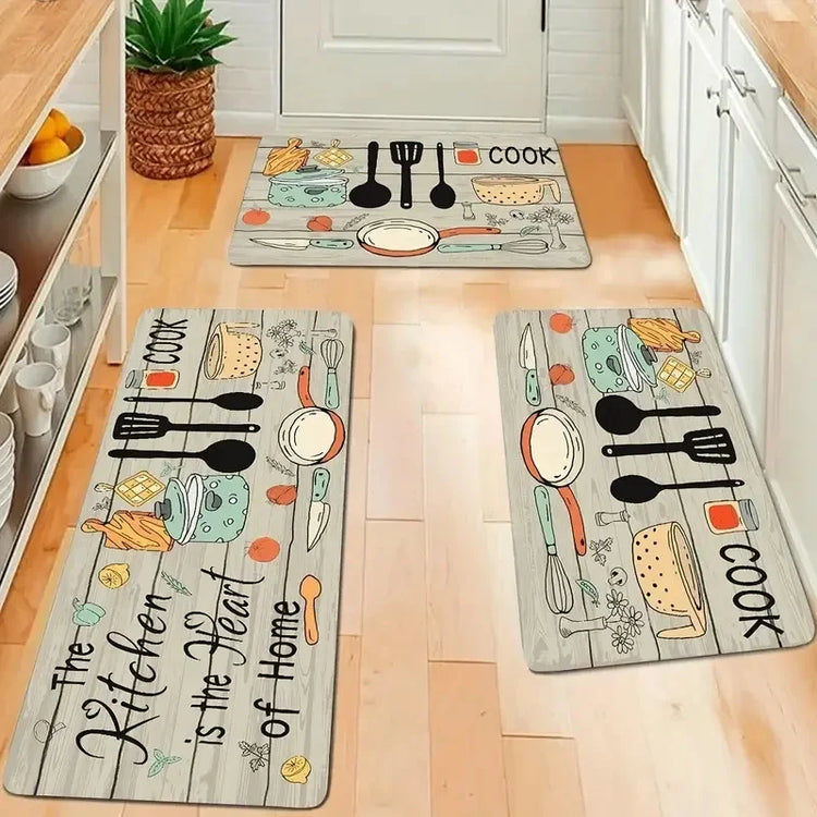 A modern kitchen and laundry floor mat with stylish printed designs. Its anti-slip surface makes it safe and practical for entrances, living rooms, or lounge areas while adding a decorative touch to your home.