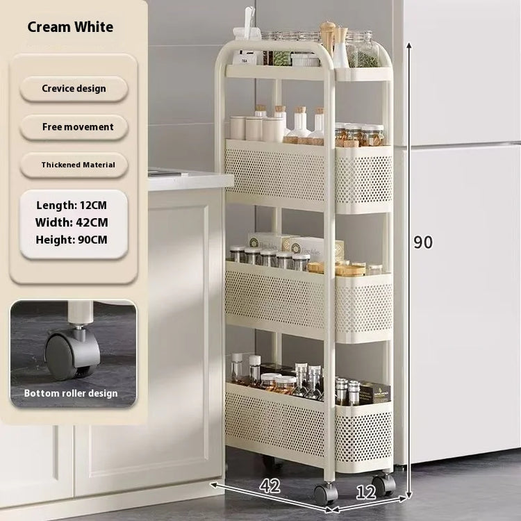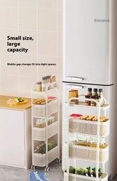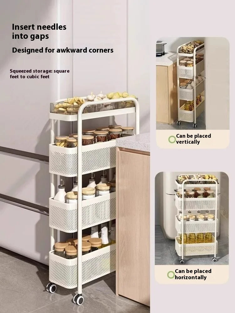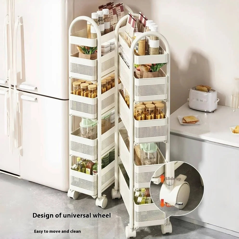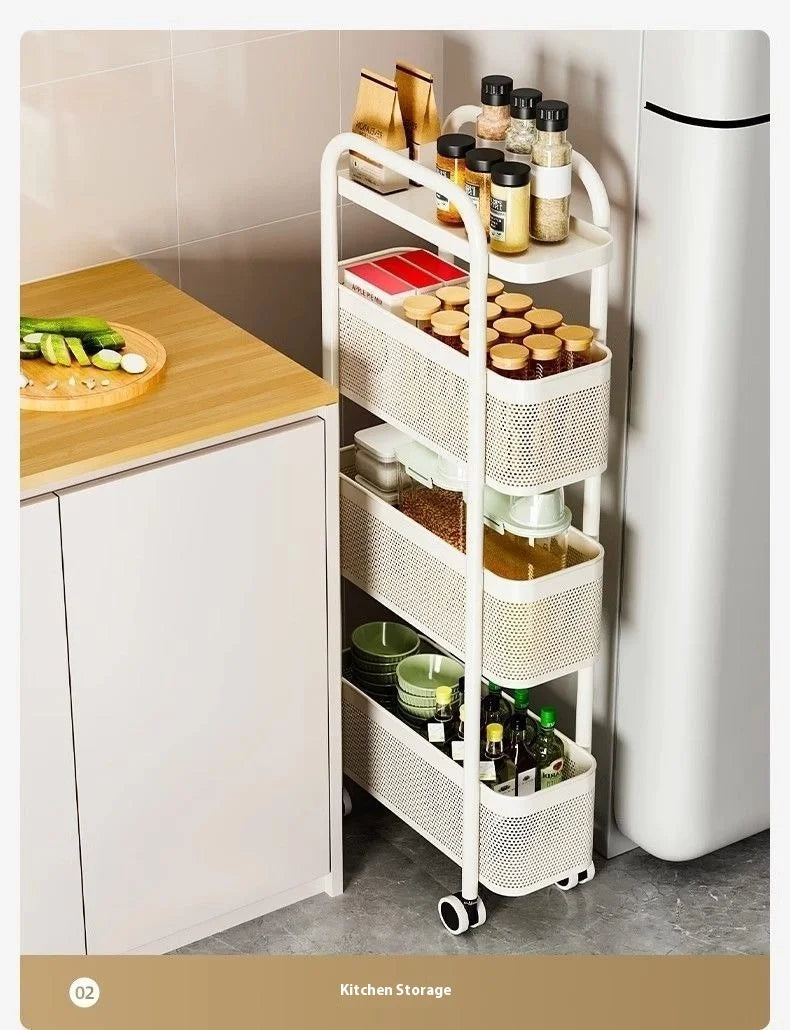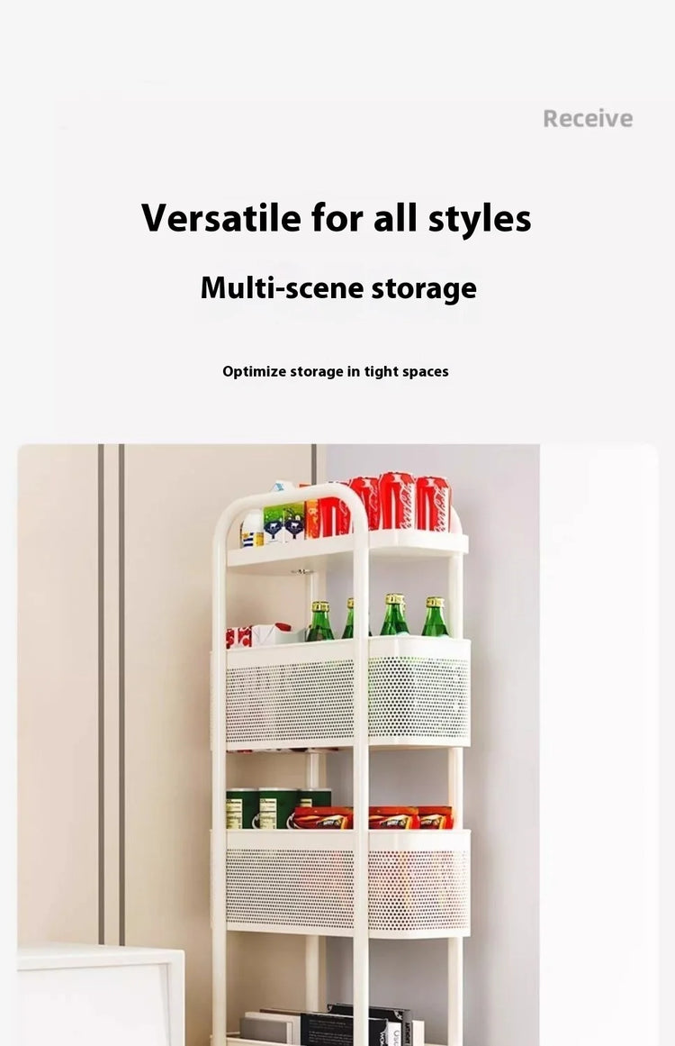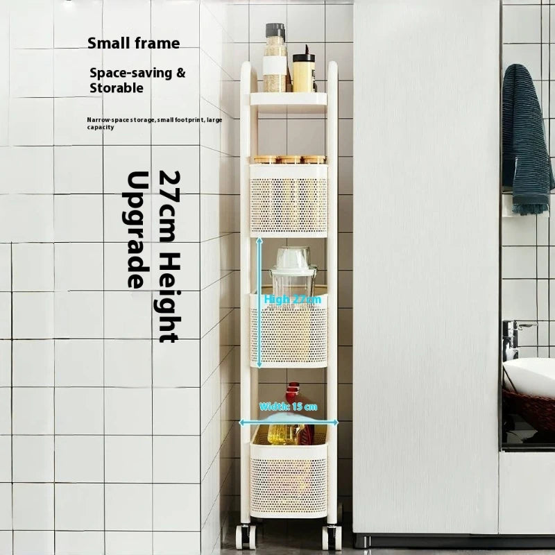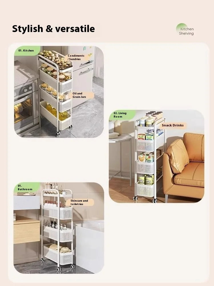 A multi-layer, ultra-thin mobile rack designed to fit narrow spaces in bathrooms, balconies, or kitchens. It’s perfect for storing snacks, toiletries, or household items while keeping everything organized and accessible.