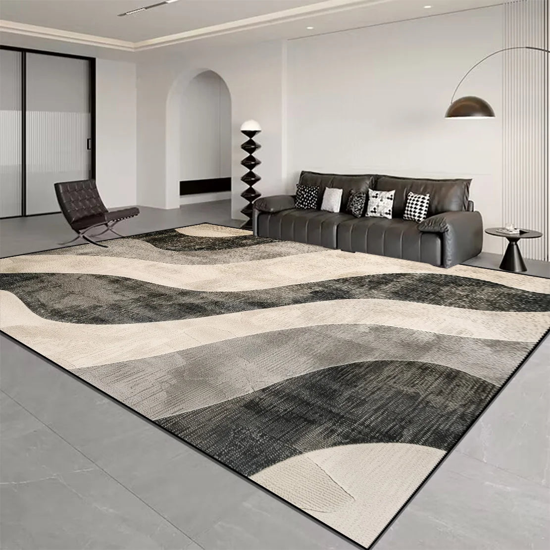 A Nordic-style light luxury rug featuring elegant orange and brown stripes. Its soft texture and easy-to-clean design make it perfect for living rooms, bedrooms, or large open spaces.
