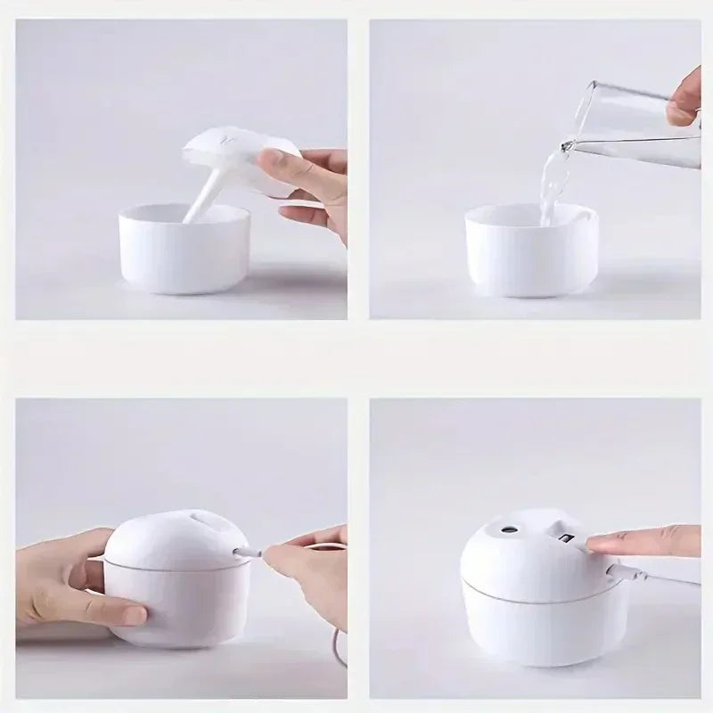 A 250ml compact USB-powered humidifier with double mist mode for optimal hydration. Functions as both an air humidifier and aroma essential oil diffuser. Perfect for car, office, or bedroom use quiet, efficient, and easy to carry anywhere.
