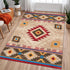 A Southwestern-style area carpet featuring bold geometric and tribal patterns inspired by Native American design. Its boho aesthetic and washable material make it a stylish and practical addition to any living space.