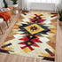 A Southwestern-style area carpet featuring bold geometric and tribal patterns inspired by Native American design. Its boho aesthetic and washable material make it a stylish and practical addition to any living space.