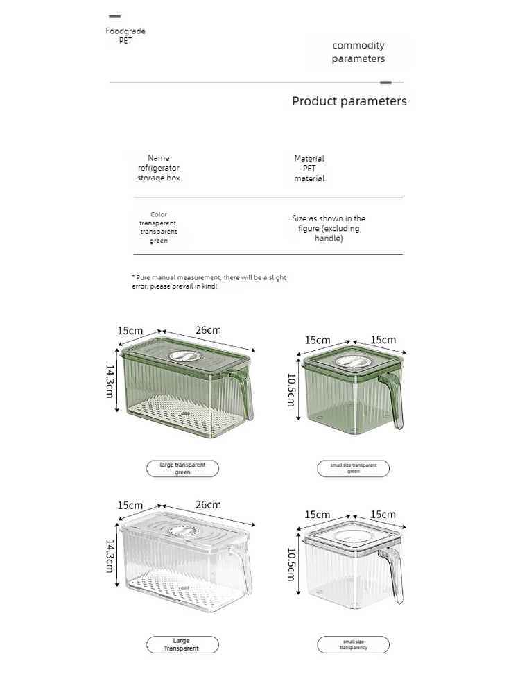 Stackable Refrigerator Storage Box with Lid, Capable of Storing Bread, Food, Vegetables, and Fruits,organizer box with handle