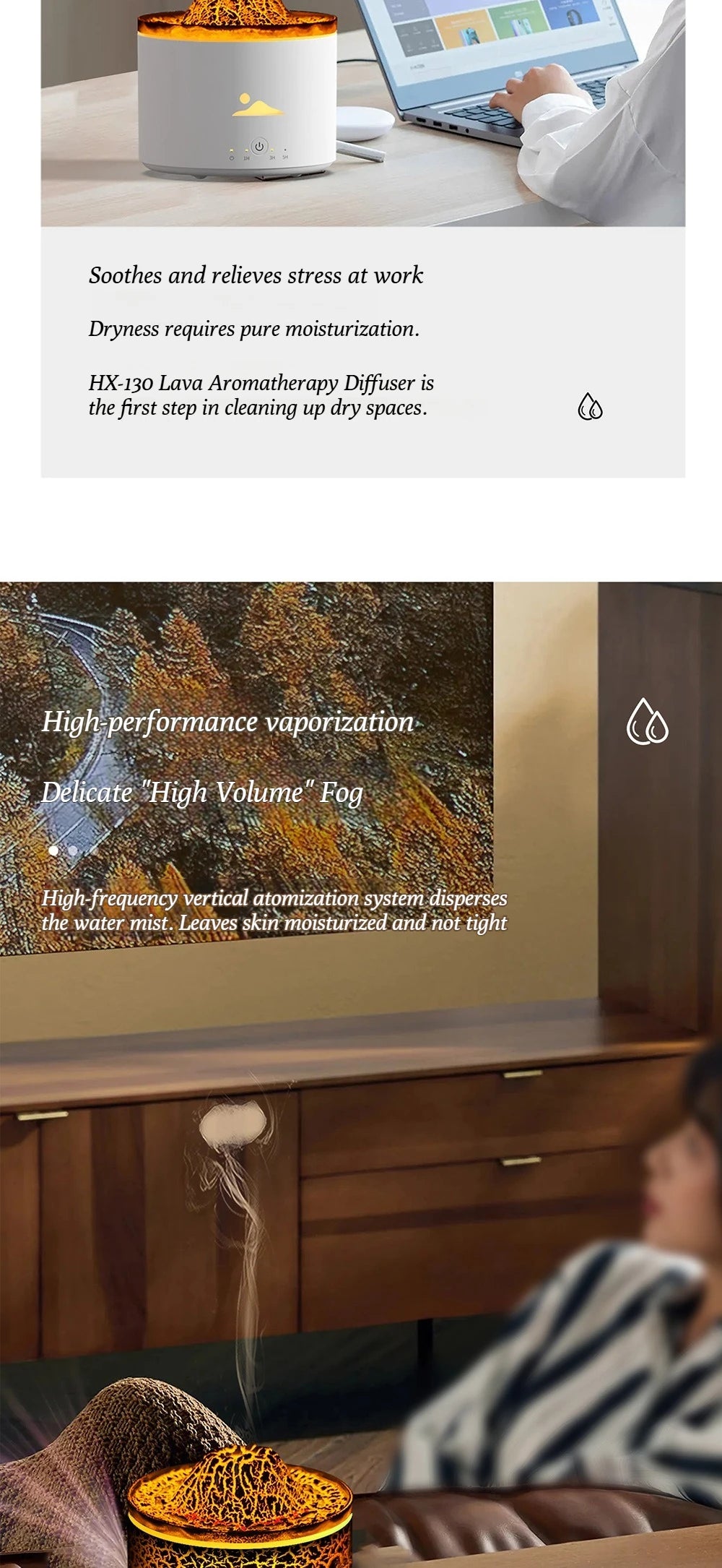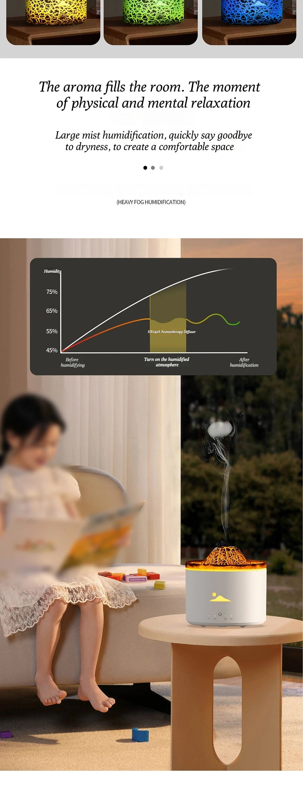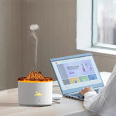 A flame-effect air humidifier that releases mesmerizing smoke ring mist while diffusing essential oils. Featuring LED lighting, it’s perfect for adding fragrance and ambiance to your home or car.