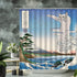 A high-quality waterproof shower curtain featuring a serene cat and dragonfly design. Its oriental-inspired style brings a calm and elegant touch to any bathroom décor.